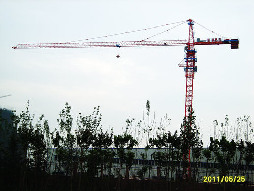 該機的起升機構采用三速電機,最高速度達80米/分鐘,卷筒直徑大,鋼絲繩使用壽命長,液壓推桿制動器制動。變幅機構采用雙速制動電機,就位性能良好。雙回轉(zhuǎn)機構,行星齒輪減速器,配置限矩型液力偶合器,繞線電動機調(diào)速,起制動平穩(wěn),工作可靠。安全裝置齊全。設有力矩限制器、起重量限制器、起重高度限位器,小車變幅限位器、回轉(zhuǎn)限位器等安全裝置。塔身弦腹桿采用專用方鋼管。該機從整機外形到走臺、爬梯、防護欄、駕駛室等細節(jié)設計充分考慮人機關系。整機造型美觀,駕駛視野開闊,使用舒適。